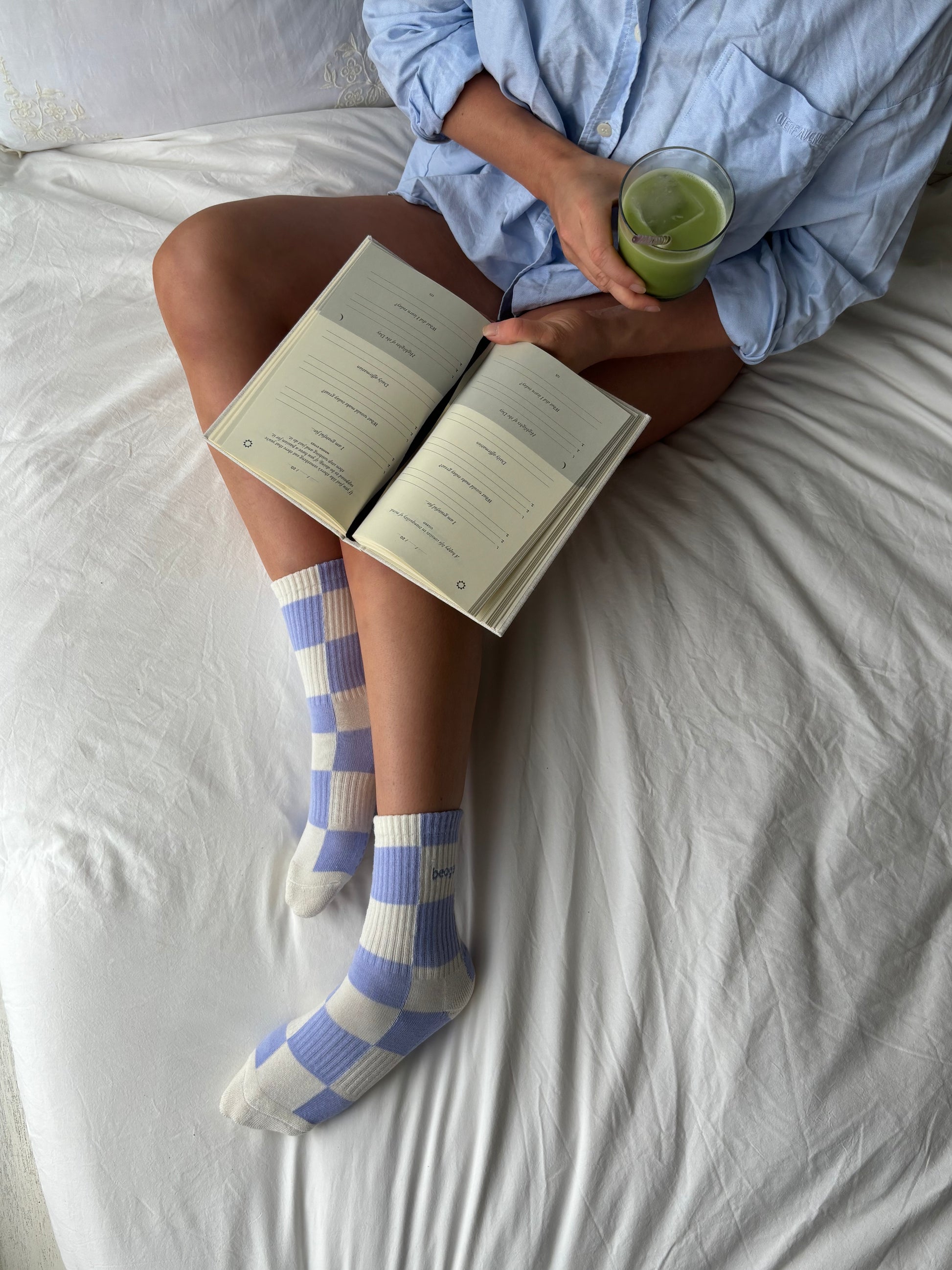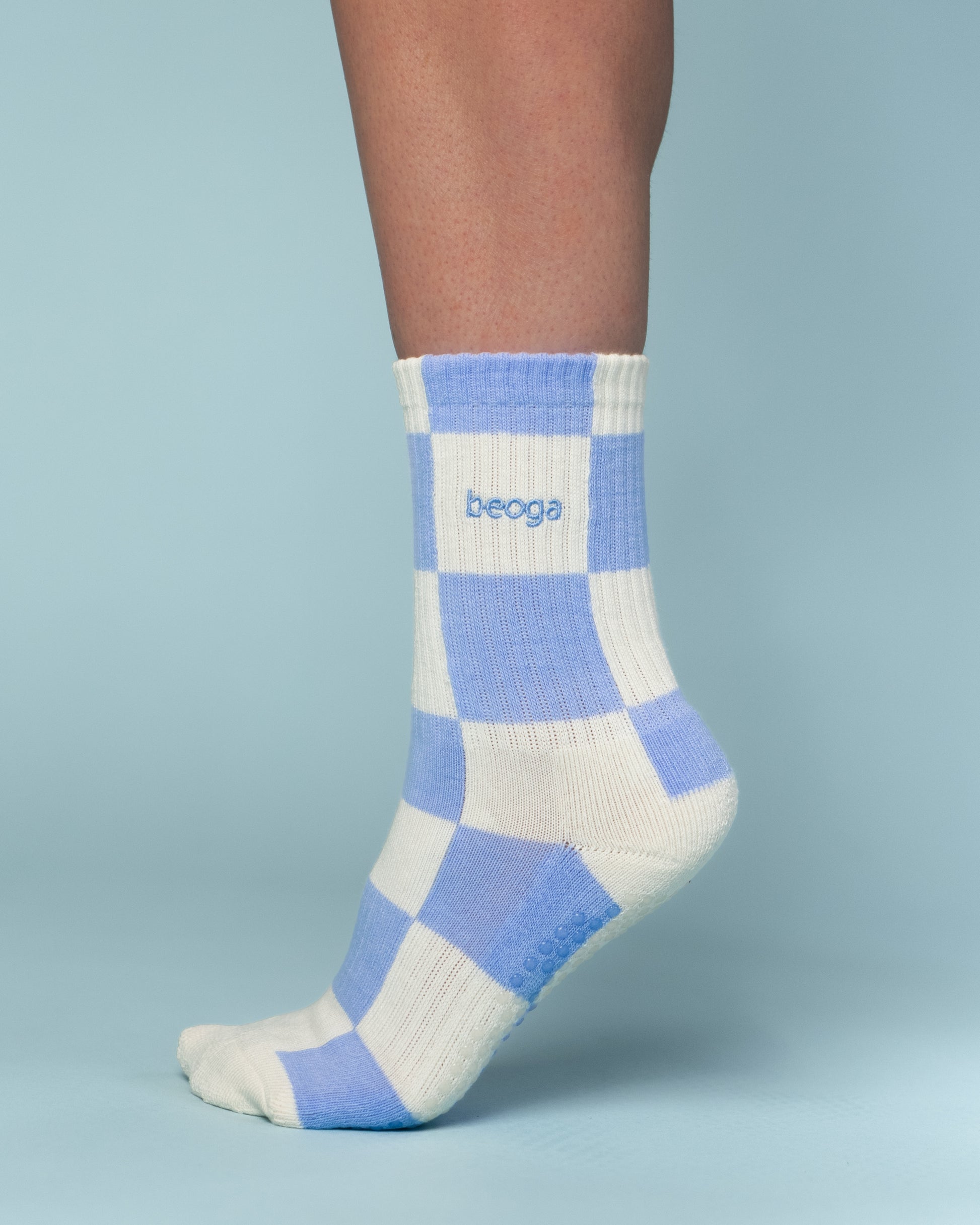 Get ready to glide in our gorgeous checkered grip socks! Keeping it fun with a bright blue check, these grip socks offer support and comfort. They are perfect for both reformer and mat pilates.